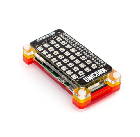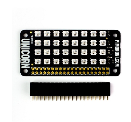 Unicorn pHAT provides a wash of controllable color that is ideal for mood-lighting, pixel art, the persistence of vision effects, status indications, or just blasting color into your surroundings.
